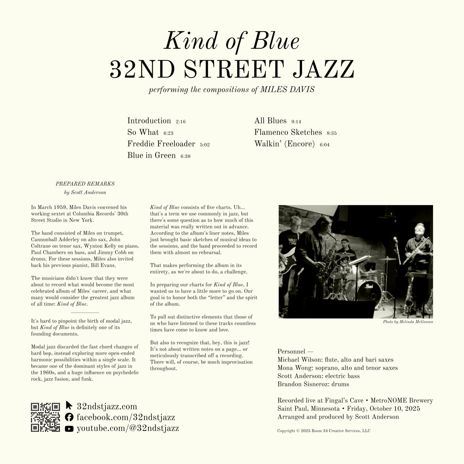 Featuring the legendary Miles Davis album KIND OF BLUE in its entirety, plus another Miles tune, “Walkin’,” as an encore, this album will be available to stream or download on Friday, October 31!